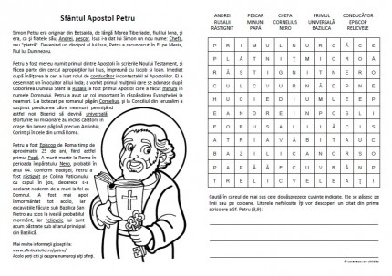 Fişa include o scurtă biografie a căpeteniei Apostolului (inspirată din textul de pe SfintiCatolici.ro), în care sunt subliniate 15 cuvinte. Acestea au fost „ascunse” în careul alăturat biografiei. După descoperirea lor, literele rămase nefolosite vor forma un citat din prima scrisoare a Sf. Petru.
