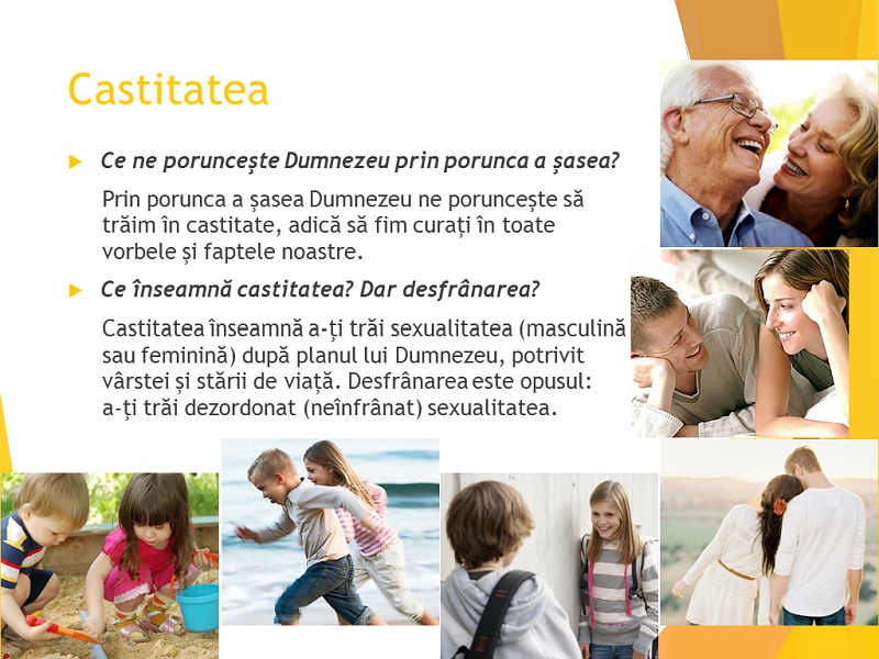 Transpunerea în Power Point a secţiunii despre Porunca a 6-a din „Abecedarul credinţei”, catehism greco-catolic pentru copii, cu întrebări şi răspunsuri. Această parte o găsiţi online pe Credinta-Catolica.ro.