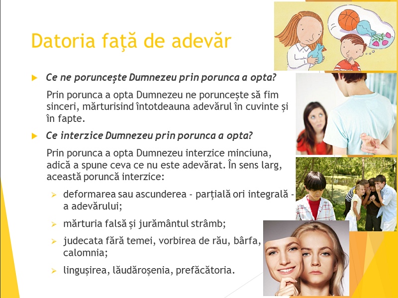 Transpunerea în Power Point a secţiunii despre Porunca a 8-a din „Abecedarul credinţei”, catehism greco-catolic pentru copii, cu întrebări şi răspunsuri. Această parte o găsiţi online pe Credinta-Catolica.ro.