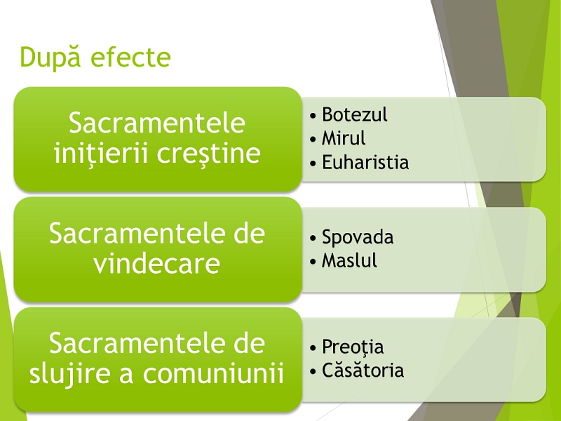 Transpunerea în Power Point a secţiunii despre clasificarea Sacramentelor din „Abecedarul credinţei”, catehism greco-catolic pentru copii, cu întrebări şi răspunsuri. Această parte o găsiţi online pe Credinta-Catolica.ro.