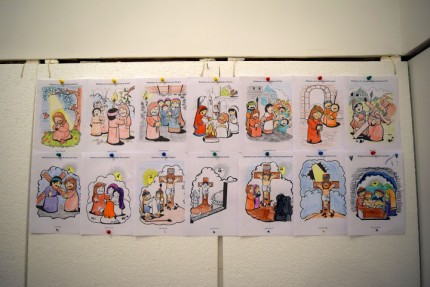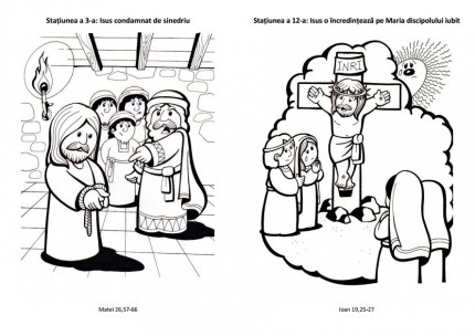 Un set de imagini (destul de mari pentru o tipărire decentă în format A5) au fost unite într-o „cărțulie” (în Word este setat tip booklet, dar dacă aveți probleme puteți descărca fișierul PDF și să fiți atent cum listați față verso). Desenele sunt realizate de Las Melli, iar urmărind linkul de la final veți găsi și imaginile și cărțulia (Word+PDF). De reținut că nu sunt stațiunile tradiționale ale Căii Crucii!