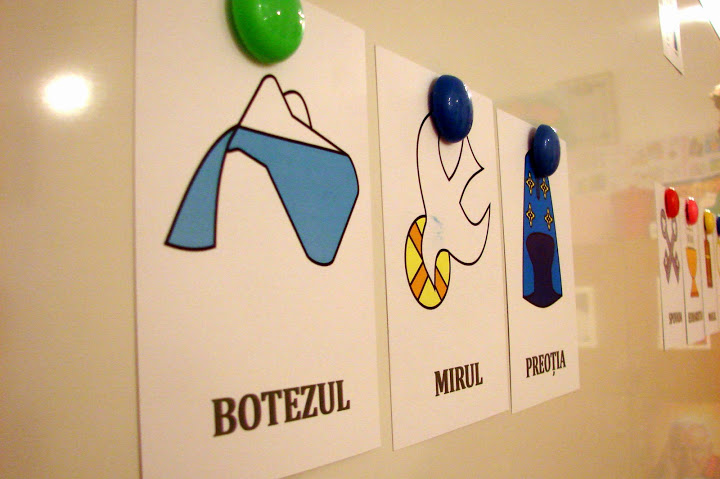 La capitolul Sacramente este util să se reţină anumite clasificări: după efectele lor, după starea sufletească a celui care le primeşte şi după numărul de administrări. Pentru a fi uşor de operat cu aceste clasificări am făcut un set de cartonaşe: o variantă mai mare cu care lucrăm la tablă (se văd mai jos grupate Sacramentele ce pot fi primite o singură dată în viaţă) şi o variantă mai mică, un set de cartonaşe pe care l-a primit fiecare copil (pentru ca şi acasă să se mai „joace” cu clasificările).