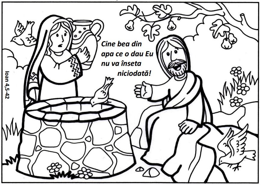 Fişa propune un desen de colorat şi o activitate (de descoperit un text). În original (originalul spaniol) fişa este pentru a 3-a duminică din Postul Mare din calendarul romano-catolic, anul A, lectura evanghelică a zilei fiind de la Ioan, capitolul …