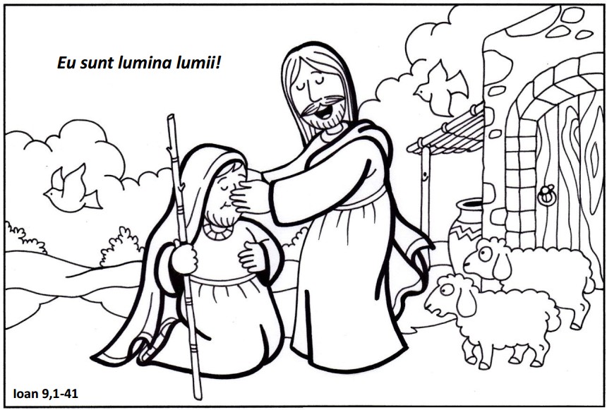 Fişa propune un desen de colorat şi o activitate (de descoperit un text). În original (originalul spaniol) fişa este pentru a 4-a duminică din Postul Mare din calendarul romano-catolic, anul A, lectura evanghelică a zilei fiind de la Ioan, capitolul …