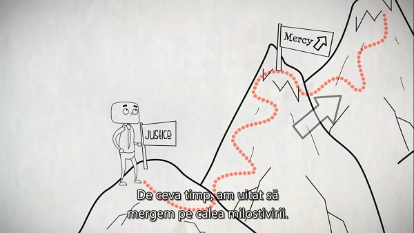 Din seria „Un minut cu Papa Francisc” (produs de Catholic-Link.org), clipul acesta explică Jubileul Milostivirii. Amintim ceea ce scrie la finalul clipului: dialogul din această animație este ficțiune, dar cuvintele Sfântului Părinte sunt inspirate din discursurile și scrierile lui.