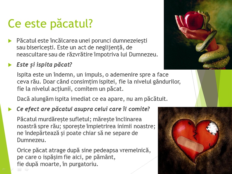 Transpunerea în Power Point a secţiunii despre păcat din „Abecedarul credinţei”, catehism greco-catolic pentru copii, cu întrebări şi răspunsuri. Această parte o găsiţi online pe Credinta-Catolica.ro.
