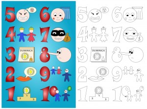 Am desenat cu Inkscape un set de imagini care pot fi utile pentru Cele 10 Porunci. De ce am desenat? Pentru că cele găsite pe web erau nu doar de dimeniuni mici sau calitate slabă, ci şi fie după o altă împărţire a poruncilor decât cea catolică, fie nepotrivite pentru copii (ilustrare prea grafică pentru poruncile 5 şi 6). Drept urmare am conceput un set propriu, care nu e foarte artistic dar e bun pentru lucrul cu copiii (de exemplu noi folosim când vorbim despre Porunci în pregătirea pentru Prima Împărtăşanie).