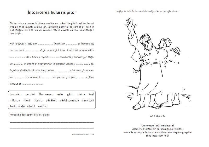 În fişă aveţi un text în care câteva cuvinte au… căzut! Trebuie trebuie să le puneţi la locul lor. Cuvintele potrivite care merg în text trebuie tăiate din listă. Vor rămâne atunci câteva cuvinte cu care se alcătuieşte o propoziţie.