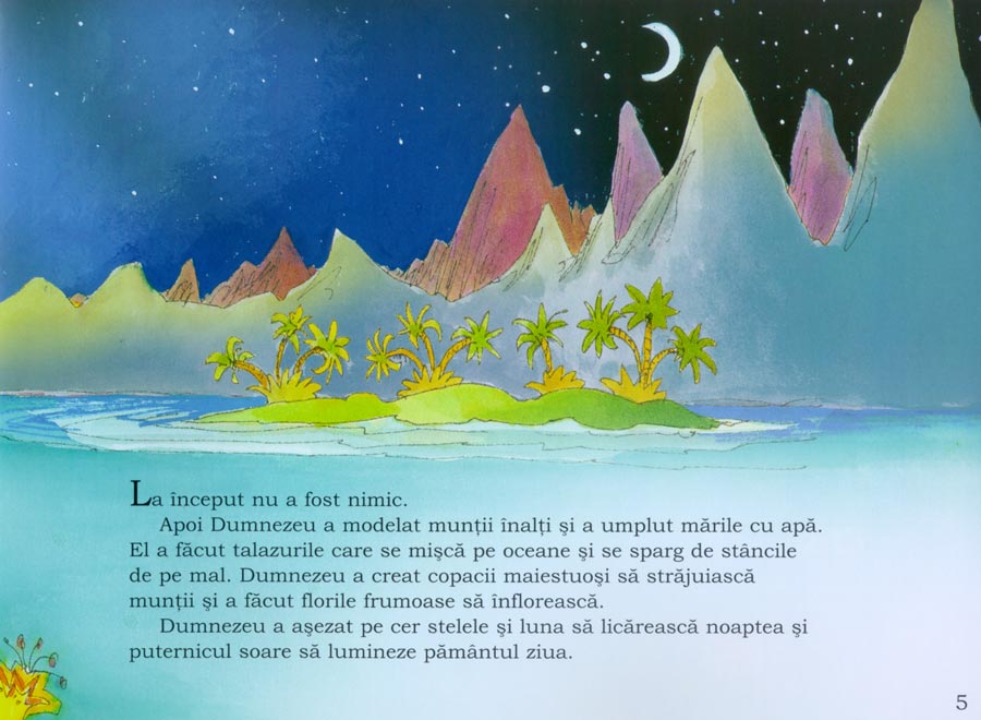 Este o excelentă introducere pentru povestirile din Biblie, începând de la creaţie şi până la naşterea, moartea şi învierea lui Isus. Cu poze în culori vii şi cu povestiri simple, această carte poate fi temelia pentru construirea în continuare a credinţei biblice. Prezentarea unor personaje biblice îndrăgite, cum ar fi Avraam, Iosif, Moise, Ilie, David, Iona, Daniel şi, desigur, Isus, poate fi folosită ca ilustraţie potrivită la lecţiile despre personajele respective.