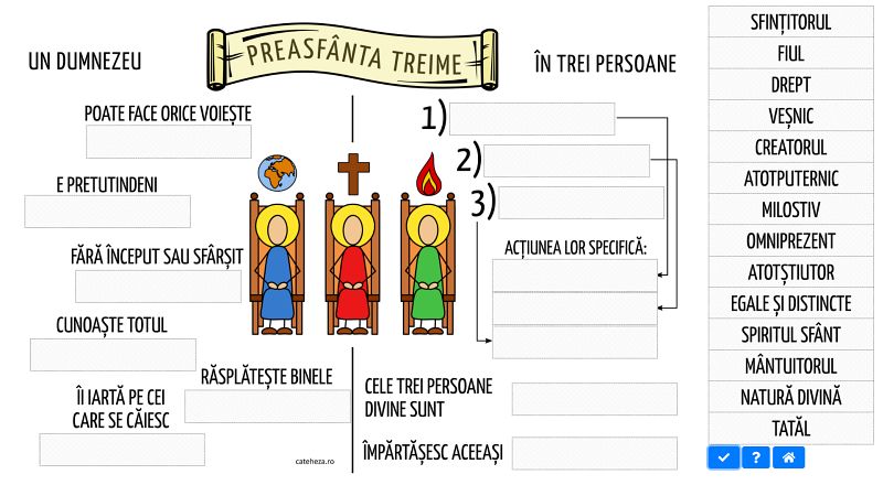 Cele șapte planșe utile pentru verificare după predarea Crezului (ce se găsesc pe acest sit în format PDF, gata de descărcat și tipărit), sunt disponibile și electronic, pe Stii.Cateheza.ro, sau ca program executabil pentru sistemul de operare Windows – o variantă online 99% identică a fost publicată aici:
