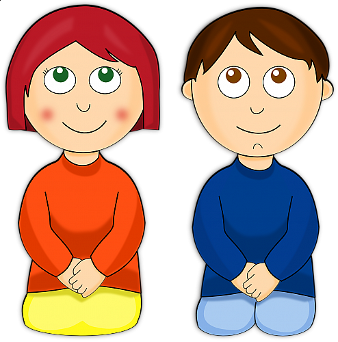Un al doilea desen realizat cu Inkscape, cu doi copii în rugăciune. Disponibil în două variante, color şi alb-negru (potrivit pentru colorat sau pentru folosit în tipărituri). Fiind în format PNG imaginile au transparenţă, deci de exemplu în Power Point se pot vedea bine peste orice fundal.