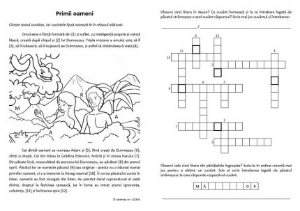 Această fişă oferă un text general despre oameni (bazat pe secţiunea despre oameni din „Abecedarul credinţei”), din care trebuie douăsprezece cuvinte sunt de identificat și trecut într-un rebus. Mai sunt două provocări suplimentare, legate de două cuvinte și întrebările la care răspund ele.
