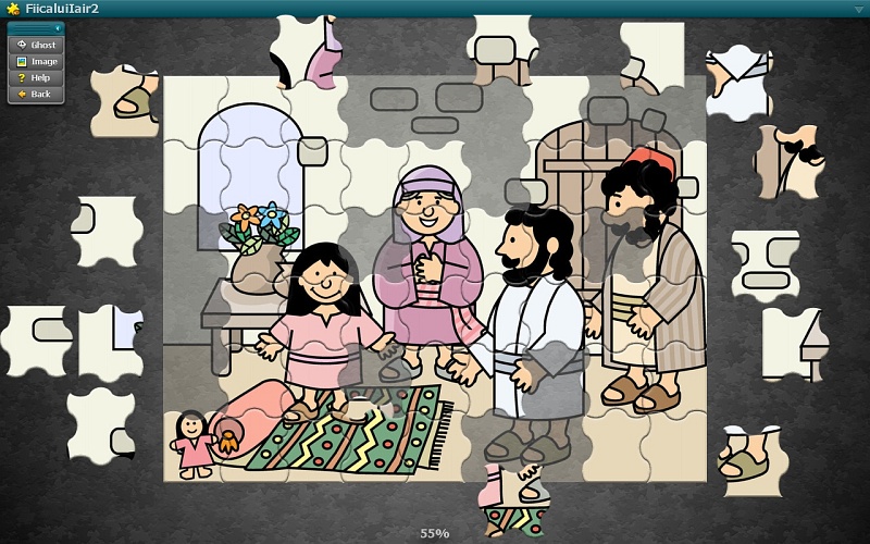 Din desenele dl. Didier Martin (vezi cartea color) despre învierea fiicei lui Iair câteva – şase mai exact – au fost transformate în puzzle-uri. Descărcaţi fişierul şi lansaţi-l (nu necesită instalare). Toate puzzle-urile sunt într-un singur executabil. Puzzle-urile au între 50 şi 70 de piese.