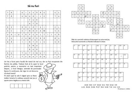 Această fişă este despre Porunca a VII-a, bazat pe capitolul „A șaptea poruncă dumnezeiască”, din „Abecedarul credinţei. Catehism greco-catolic pentru copii”, apărut la Viaţa Creştină în 2013. Trebuie reconstruit un careu cu litere ce oferă diverse informații despre cine este vinovat de furt, plus de găsit literele care dau 7. Apoi vine un text codificat despre reparația cuvenită.