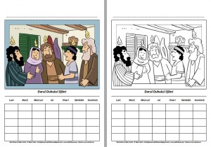 Dacă asamblarea calendarului este prea complicată, atunci se poate opta pentru fila de calendar. Trebuie doar scris sus numele lunii şi puse zilele corespunzător în grila de sub imagine şi astfel puteţi avea o filă pentru luna curentă. Alegând 12 astfel de file se poate crea un calendar pe un an întreg! Se poate opta între pagina color şi pagina de colorat. Dacă se descarcă fişierul PUB (MS Publisher) se pot scrie frumos, la calculator, numele lunii şi numerele zilelor.