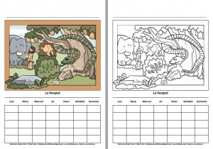 Dacă asamblarea calendarului este prea complicată, atunci se poate opta pentru fila de calendar. Trebuie doar scris sus numele lunii şi puse zilele corespunzător în grila de sub imagine şi astfel puteţi avea o filă pentru luna curentă. Alegând 12 astfel de file se poate crea un calendar pe un an întreg! Se poate opta între pagina color şi pagina de colorat. Dacă se descarcă fişierul PUB (MS Publisher) se pot scrie frumos, la calculator, numele lunii şi numerele zilelor.