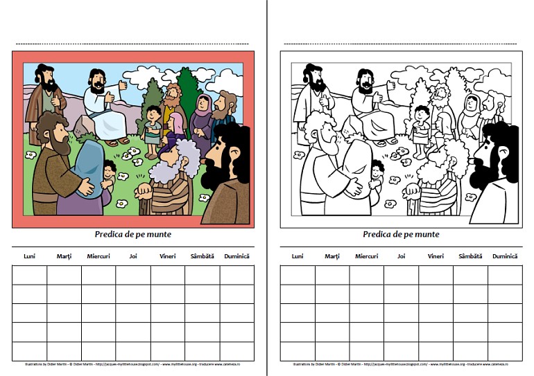 Un tablou 3D realizat de artistul Didier Martin, tradus şi publicat cu permisiunea sa pe Cateheza.ro, reprezentând predica de pe munte. Tabloul vine în variantă color (primele 3 pagini), respectiv de colorat (următoarele 3 pagini). Realizarea de tablouri 3D nu este cea mai simplă, dar efortul merită datorită rezultatului deosebit.
