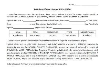 Test: Despre Spiritul Sfânt